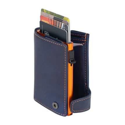 Blauw Tony Perotti Furbo Leren Pasjeshouder Met Kleingeldvak Oranje / Blauw