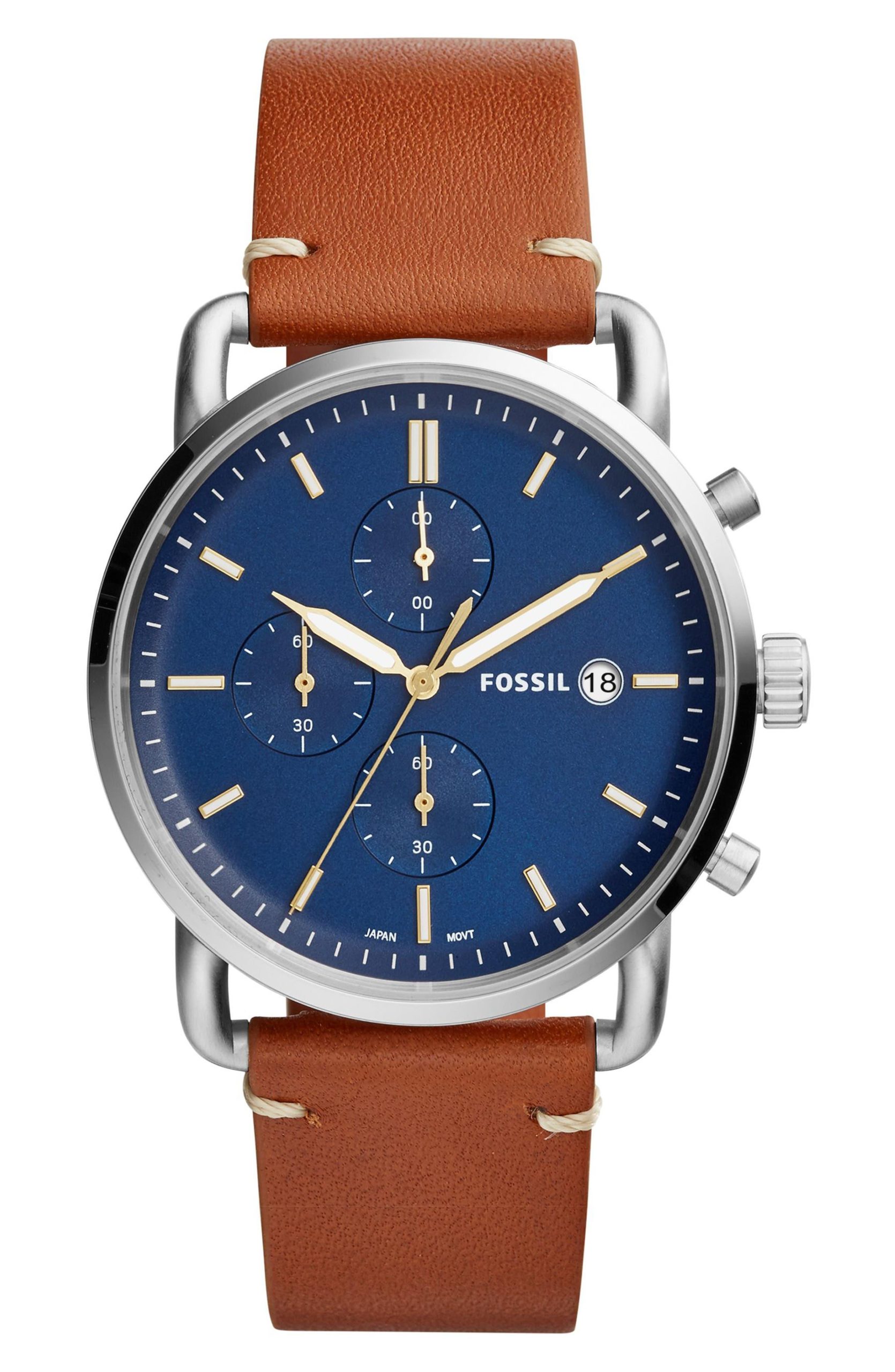 Fossil Heren Commuter chronograaf lichtbruin lederen horloge FS5401