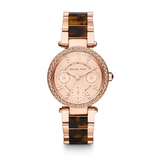 Michael Kors Dames Mini Parker Tortoise Acetaat en Rosegoudkleurig horloge MK5841